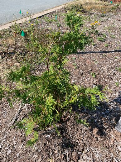 As the alternative to cedar trees, creeping juniper was selected for the south portion of the medicine garden. Unlike other plants, its low green body spreads horizontally, covering the soil. Creeping juniper has a strong pine-like smell and seeds that are blue and shaped like a crotal bell. Creeping juniper serves similar purpose to cedars and the berries are collected during winter season to be boiled as tea with its fresh taste.